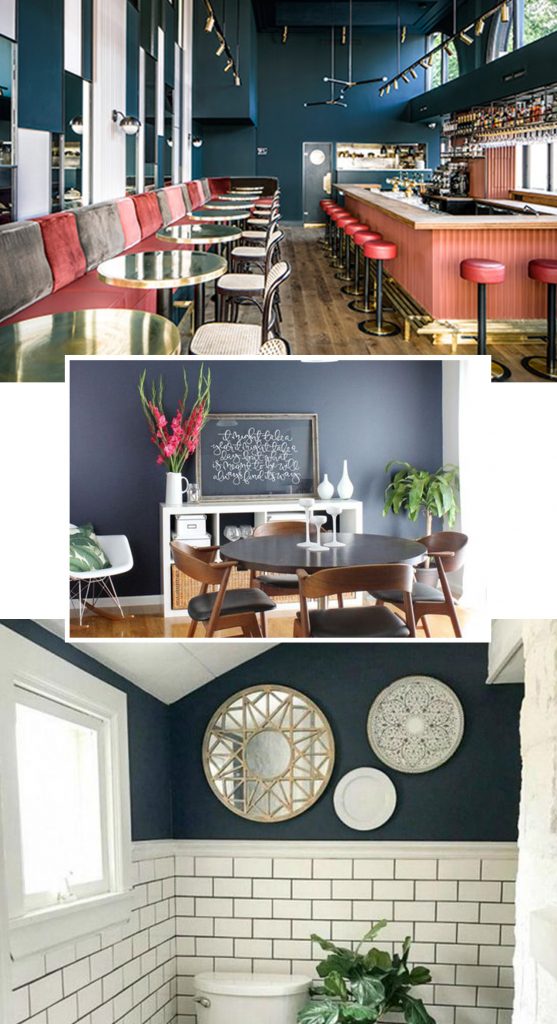 Ouste les accents de noir des dernières années! C’est le bleu marine, très foncé, qui le remplacera. Peinture sur les murs ou les cadrages de portes et fenêtres, meubles, accessoires, le bleu marine sera utilisé pour donner une touche élégante et contemporaine.