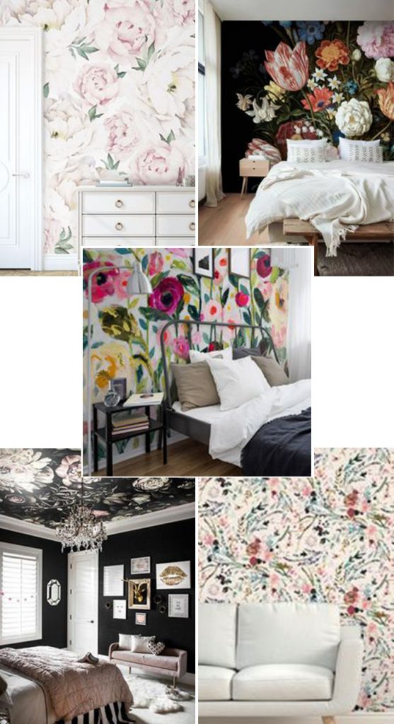 Les imprimés linéaires et géométriques seront remplacés des motifs fleuris. Attention! Qui dit floral ne veut plus nécessairement dire la tapisserie kitsch de ta vieille tante. Les motifs de tapisserie ont évolué et ce qui est disponible sur le marché est magnifique! Vous n’êtes pas obligés de couvrir tous les murs d’une pièce, juste un mur, ou même un demi-mur fera l’affaire. Essayez au plafond!