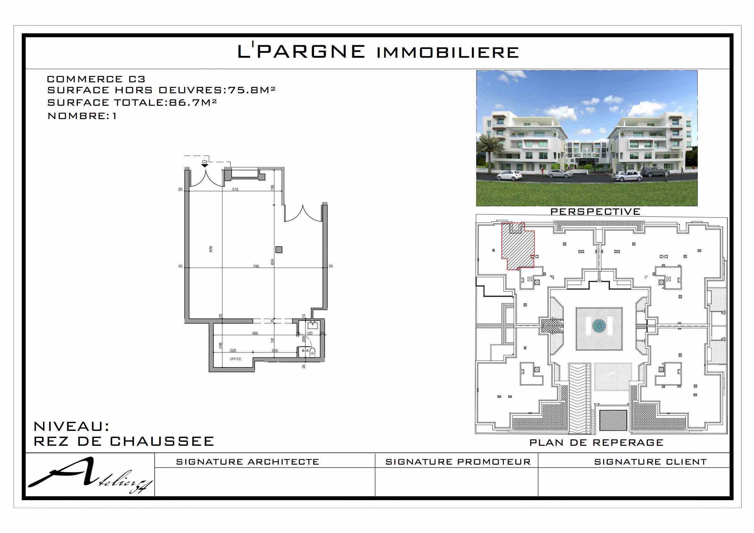 Magasin C3: 86.7 m² – Télécharger le Plan