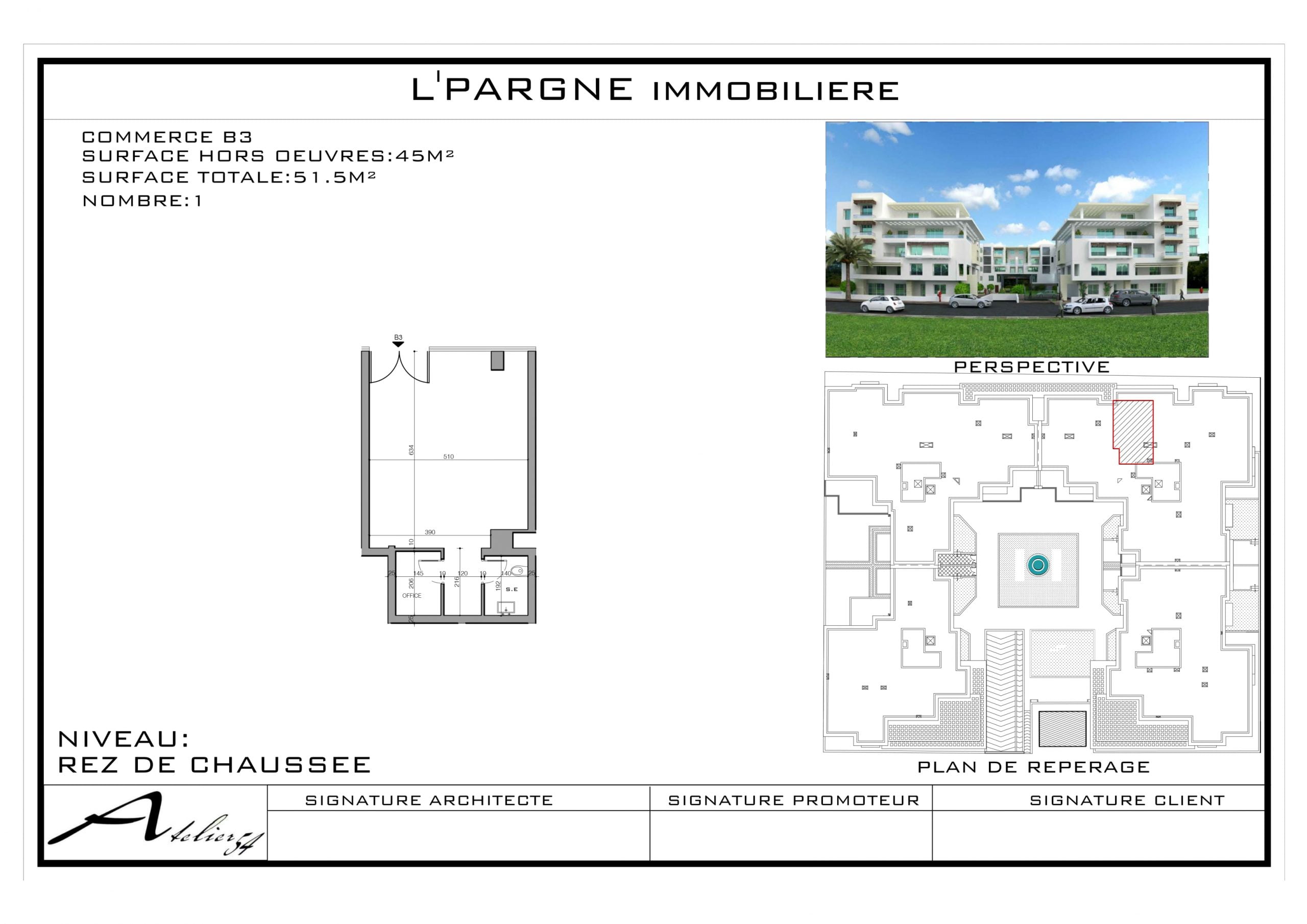 Magasin B3: 51.5 m² – Télécharger le Plan